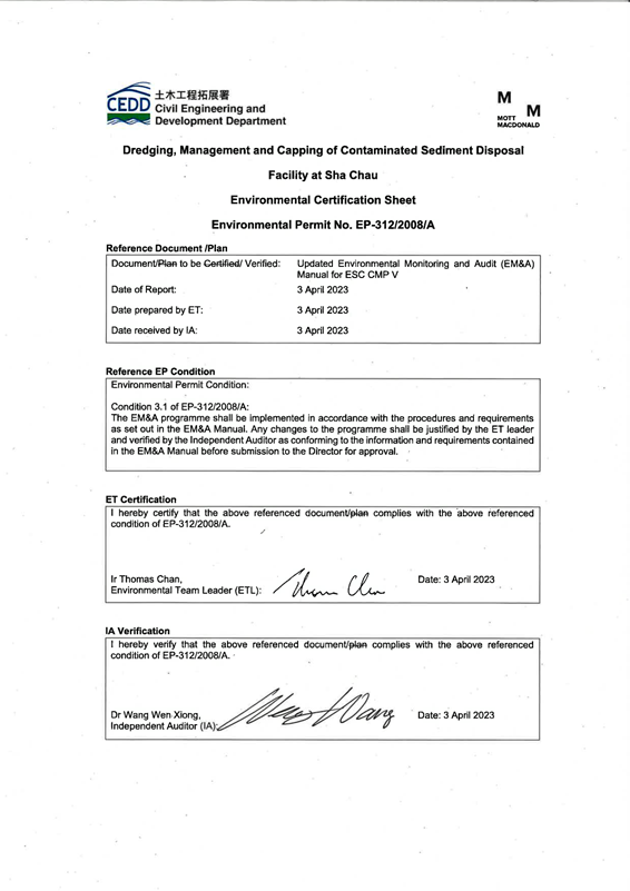 Confirm that all activities, tests, analyses, assessments etc. have been carried out as stated in this EM&A Manual;